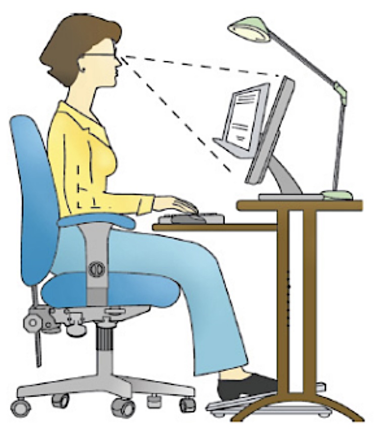 Cabeza y cuello: Idealmente se debe disponer el monitor o pantalla, justo frente al usuario, al igual que el teclado. Esto permite mantener la cabeza y cuello en una postura neutra, evitando sobreesfuerzos musculares.